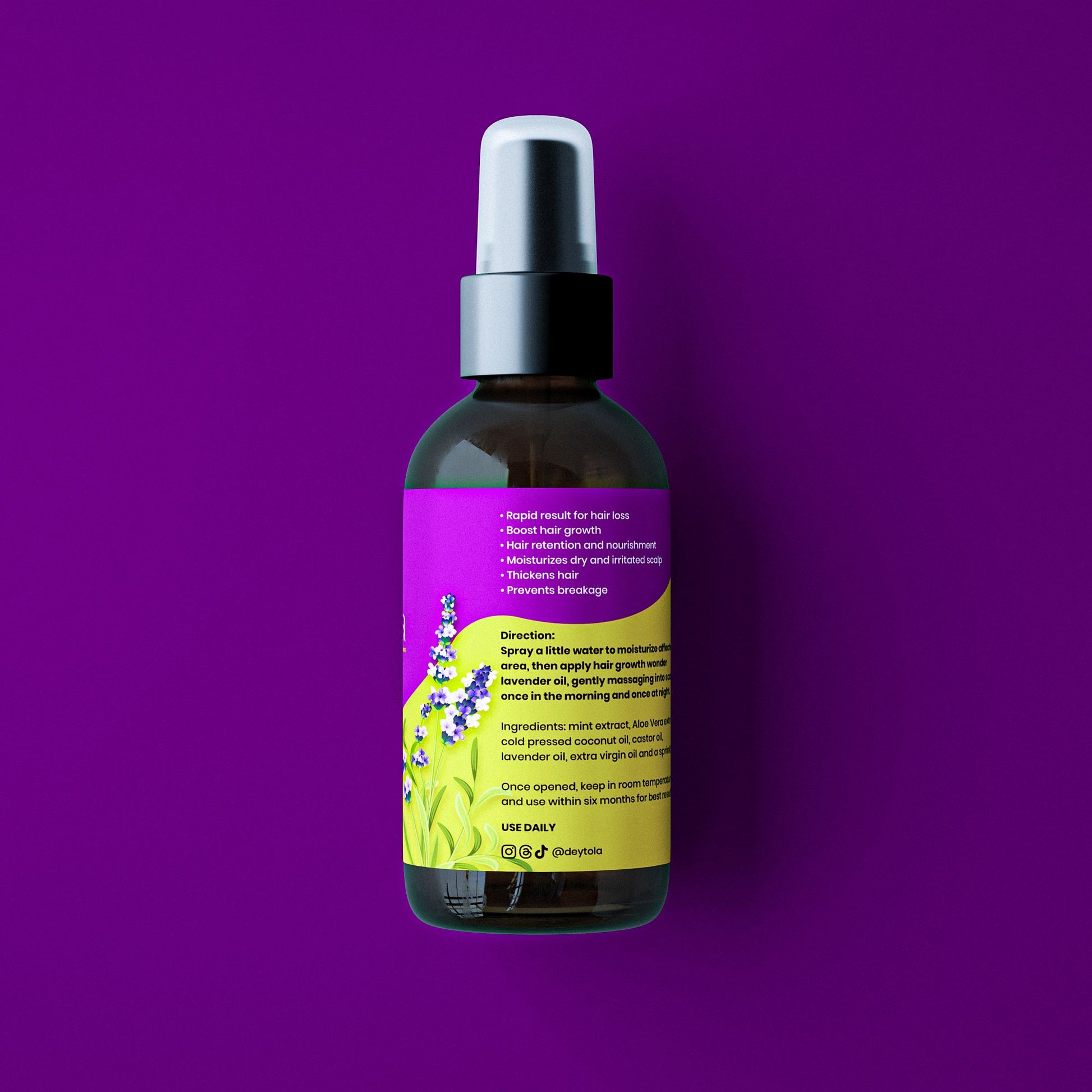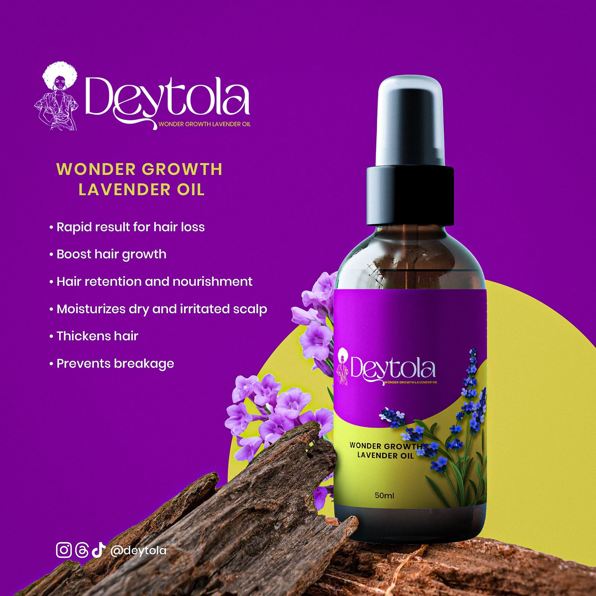 Revive your hair from the roots with Deytola Wonder Growth Lavender Oil, a nourishing blend made to strengthen, soothe, and support visible growth.